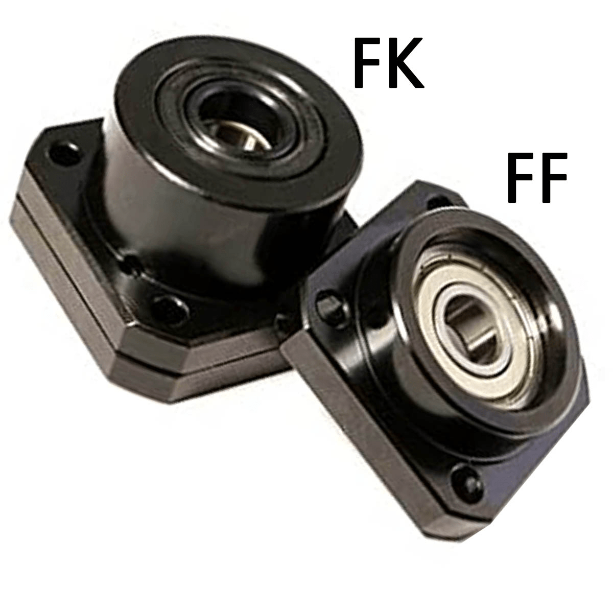 The FK “fixed” end support contains two angular contact bearings that provide both axial and rotational support for the ball screw.